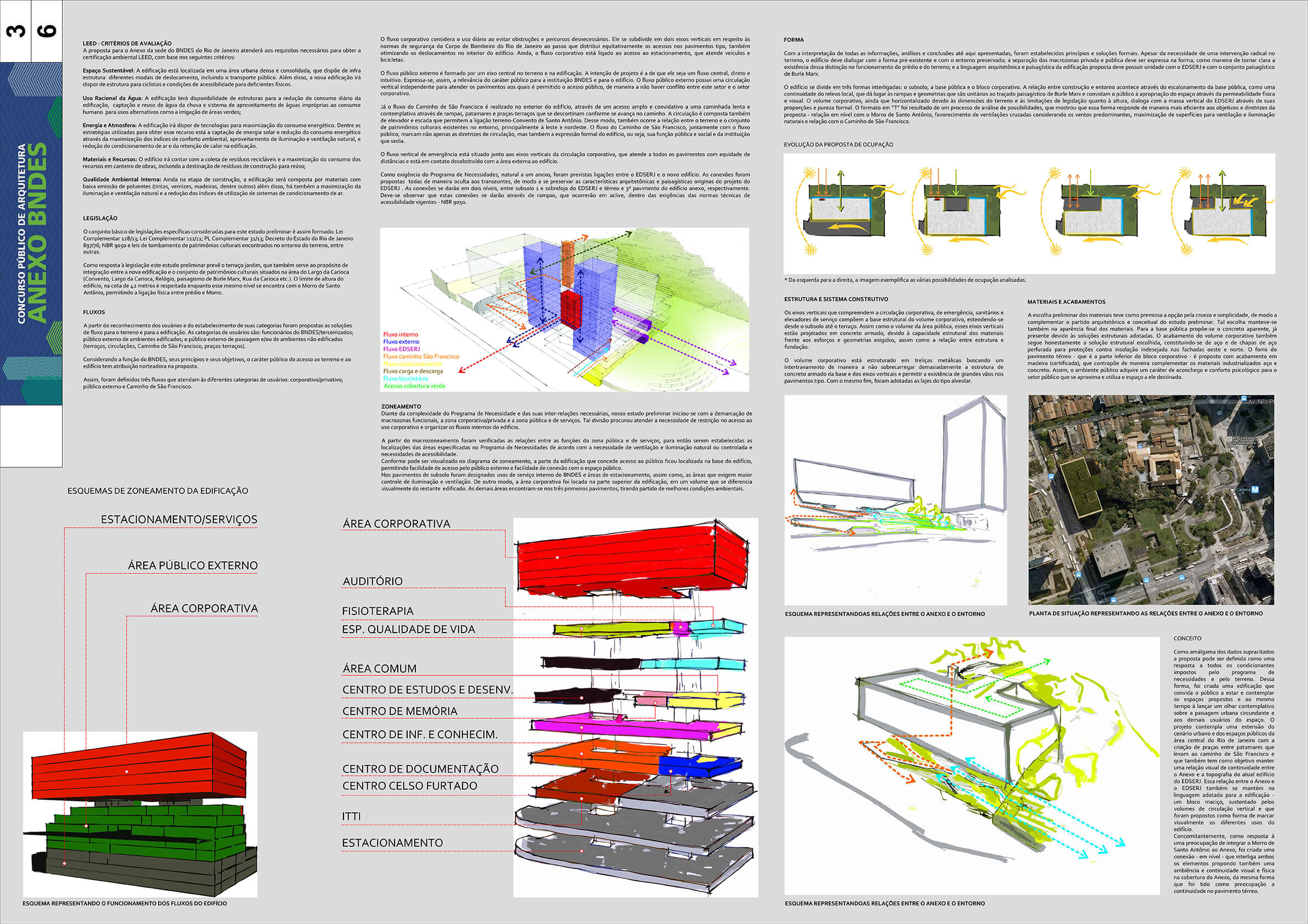 Para esse concurso de projeto, o grande desafio era atender as necessidades impostas pelo programa e pelo terreno. Após pesquisas e análises, optou-se pela criação de uma edificação, denominada de Anexo, que convida o público a apreciar os ambientes propostos e a paisagem urbana que o envolve e aos demais usuários do espaço.